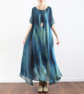 送料0♪上品.シルクサテンのワンピース.ロングスカート.キャミソールスカート.ゆったり【ブルー】