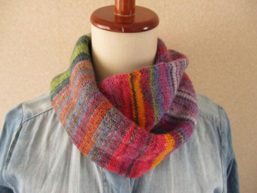 ドイツのブランド Opal Schafpate で編んだメビウスのカウルです。