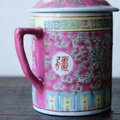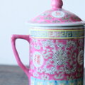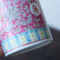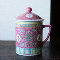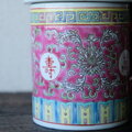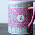 チャイナレトロで可愛い◆花と漢字と蝙蝠。中国景徳鎮 色絵蓋付マグ シノワズリ 個体B