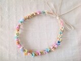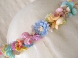 手染めで明るめの色合いの小さなお花ばかりで細い花冠に仕上げました。