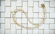 石の間には極小のゴールドビーズを挟んであります。中央付近の石の間には、それよりやや大きめのゴールドビーズを組み合わせながら挟んでいます。が、どれもさほど大きくないものですので、それほど目立つということはありません。さりげなく上品なアクセントになっているかと思います。