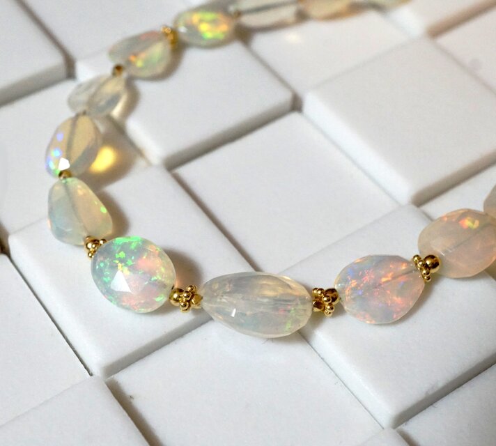 エチオピア産の大変美しいプレシャスオパールをソフトタイプのワイヤーにつなげていったネックレスです。