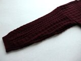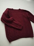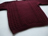 ボルドー色の毛糸で編んだ、細かい模様が特徴の手編みガンジーセーターです。落ち着いた色味で、大人っぽい印象となっています。