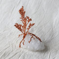 原石から生えているスターチス・カスピアは、複雑な枝ぶりもそのままに本物のドライフラワーを使用しています。エレクトロフォーミングという錬金術のような技法で、植物を金属でコーティングしたものです。