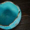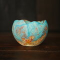 土の塊から勢いよく伸ばし整え、内側は豊かに丸く、側面は風雪に耐えた岩肌の様に仕上げました。波打つ縁や釉薬の流れ出た跡も景色としてお楽しみ下さい。