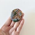 全体の印象はベースカラーはブラウンのブローチです。タイトルにあるように、実はカラフルです。
