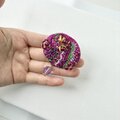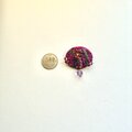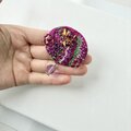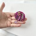 強い色合いの紫色に感じますが、ビーズなど丸みのある素材を使ってあるのでかわいらしい印象もあるかなと感じます。