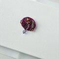 つけています。透明感のある中に、赤紫色のラインの入っているガラスビーズです。オーバル型からはみ出す形でアクセントになるようにつけています。