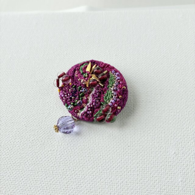 grape grape!色の変化も楽しめる 刺繍オーバル型ブローチ