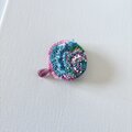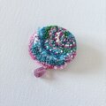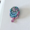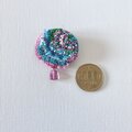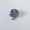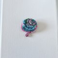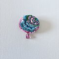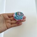 明るさのあるピンクとソーダのようなアクアブルーを2色主体で作ったブローチです。
