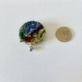 デザインのアクセントのひとつに中央右上にはゴールドと深いブルーの艶のあるガラスビーズを一粒つけました。