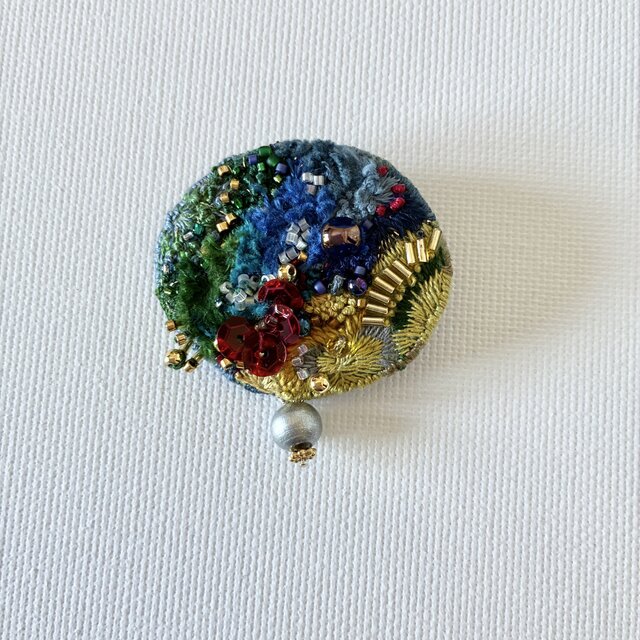 とてもとても素敵なブローチです。青、紺色系の服につけようと購入しましたが、ブローチに使われている数種類の青が美しく馴染みます。そして少し神秘的。 物語のようなブローチの名前にも引き込まれました。 素敵なブローチをありがとうございました。