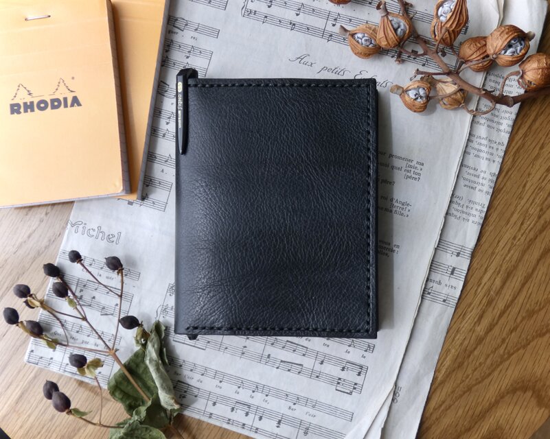 ・メモ帳サイドは一周ぐるりと縫い合わせているので、メモ帳をしっかり固定でき、書き込む際にも安定してメモがとれます。