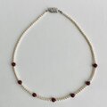 貝ベビーパールステーションネックレス/3mm/6mm約43cm/ホワイトベージュxレッド/R/made in japan