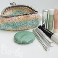 ふわふわの編み地には、小鳥つまみの口金を組み合わせました。