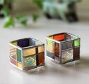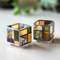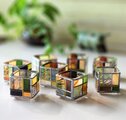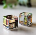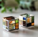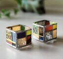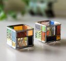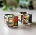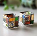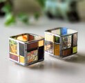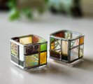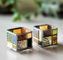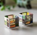 ・5㎝角のキューブガラスにグラスアートを施しています。