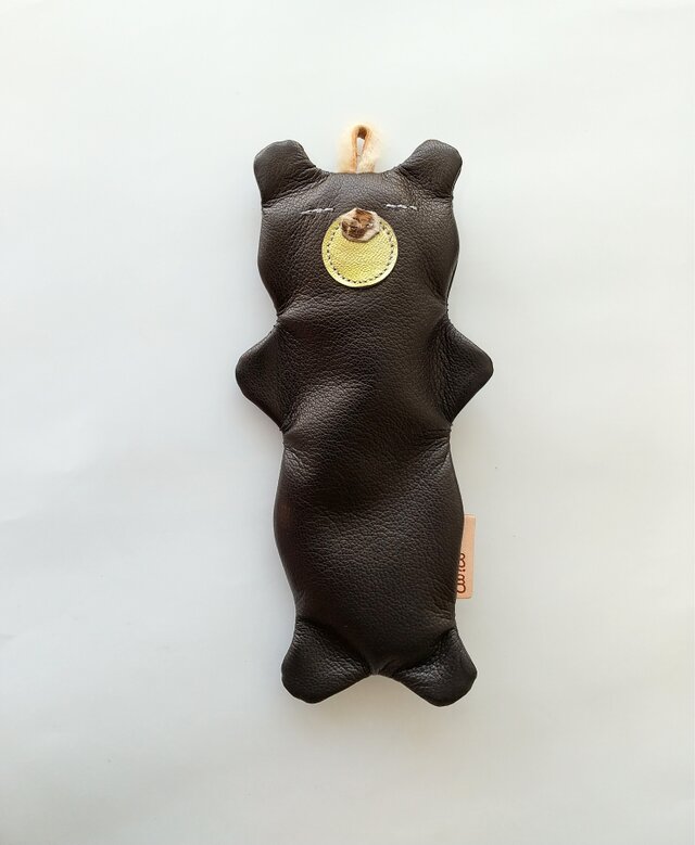 とぼけたクマの形で、壁にも掛けられる様にムートンのループが着いています。