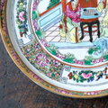 チャイナレトロで可愛い◆花と鳥と皇女。中国産 色絵金彩中皿プレート 器 シノワズリ 派手