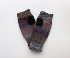 多色使いの段染め糸で編んだハンドウォーマーです。手触りはとても柔らかくふんわりとしています。