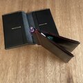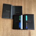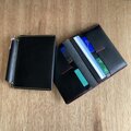 ・ポケット:大きいポケット2箇所、カードポケット4箇所(各2枚づつ収納可)、ペンホルダー1箇所。ポケットは、一枚革を折返し構造にすることにより底に空間ができ、手帳が入れ易くなっています。