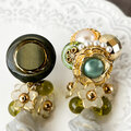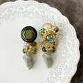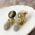 アンティーク感溢れるグリーンピアス イヤリング ボタンアクセサリー 2WAY アシンメトリー 大ぶり