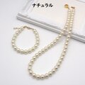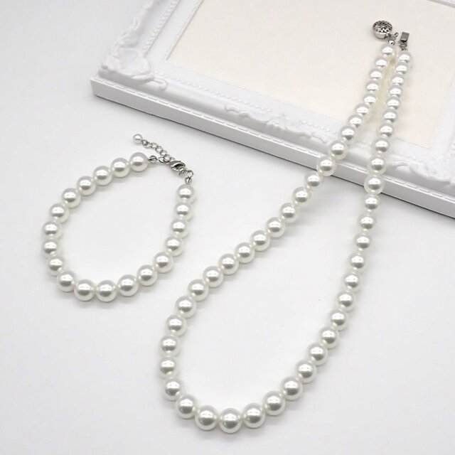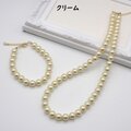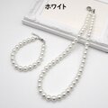 ホワイト系のカラーパールのシンプルなデザインのネックレスとブレスレットのセットです。