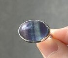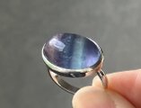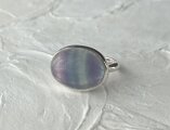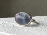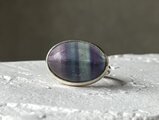深みのあるパープルやブルーグリーンのボーダー柄が美しいフローライトを、クールなシルバーに合わせてシンプルなリングにお仕立てしました。