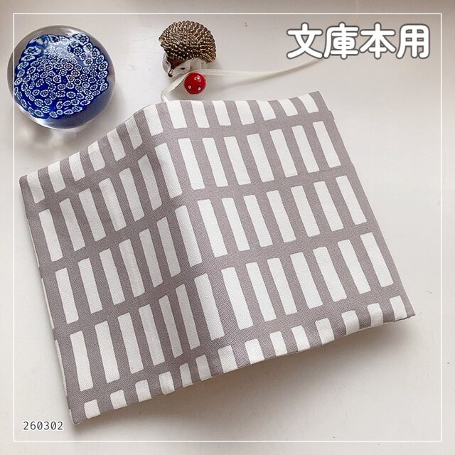 【文庫本用】北欧調の四角柄 くすみグレーのブックカバー