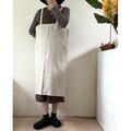 厚すぎず薄すぎず、ほどよい厚みのリネンキャンバス麻(リネン50% ラミー50%)。素敵な生地。色はフラックスカラーです。細目の肩ヒモで、とても着やすくて、いい感じ。