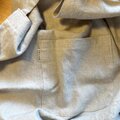 ポケットは大きめなのが両側にあります。普通1つですが、料理中に色々入れるので、2つあった方が断然ベンリです。左側にショップタグをつけています。