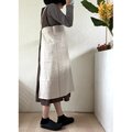 スクエアで、いわゆるエプロンのカーブがありません。フリーサイズ、ユニセックスなので、男性も違和感なく着られます。