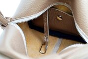 .革は生地とは違い一枚ごとに表情が異なります。私たちは多少の革キズや色ムラやシワなどは天然皮革の証と考え、そのような部分の風合いも生かし無駄に捨てる事なくバッグを作っています.