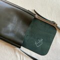 ダークグリーンの牛革はほどよい柔らかさがあり、
