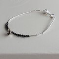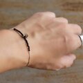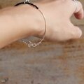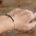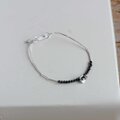 きらりと輝く約2mmのブラックストーンを合わせ、ミニマルな美しさと、大人のかっこよさを兼ね備えた腕輪に仕立てました。