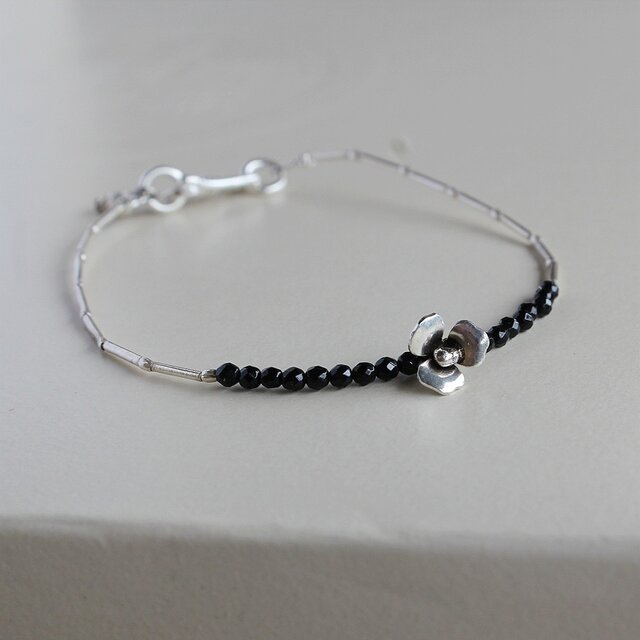 カレンシルバー、スターリングシルバーの花、ブラックストーンの腕輪