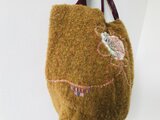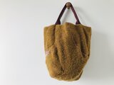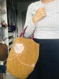 少しもこもこな秋っぽい生地のバッグ。モチーフはビーズデザインのあったワンピースの飾り部分をそのまま使用。