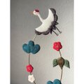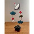 縁起物の鶴と松竹梅を組み合わせた立体押し絵のちりめん細工です。