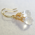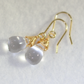 まるで小さな水のしずくを身につけているような、印象的なクリスタルのティアドロップをピアスにしました。水晶玉のような雰囲気もあって、何となくマジカルな気分になれる気もします。傷の少ない、高品質のクリスタルクオーツ(天然水晶)、とっても可愛いですよ。
