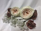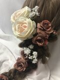 くすみピンク系カラーグラデーションのヘッドドレス チョコレートバラ・ミニバラ・かすみ草の髪飾り ウェディング・結婚式・プリンセス