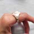 リングの場合、長時間濡れた状態で身に着けると埋め込んでいる天然石が外れてしまう恐れがございますのでご注意ください。