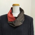 鮮やかな朱色をアレンジ、巻き方で色々な味が出るお洒落なスヌードに仕上がったと思います。