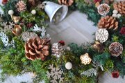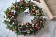 たくさんの木の実にクリスマスの賑わいを感じるリース。