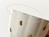 また、小さな黒点や、僅かなペイントのカスレ、縁の金彩ムラ、カスレ、高台には焼成時の付着による着色のみられる箇所がございます。