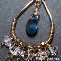メインのロンドンブルートパーズは、ペアシェイプにお作りしたワイヤーの中に、チェーンを使用して納めました。