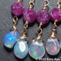 ハーキマーダイヤモンドの隣にチェーンを下げ、ルビー、カラーオパールの順に飾りました。
