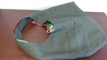 モスグリーンのリネン生地でワンショルダーのバッグを作ってみました。内布は明るい花柄のリネン地です。