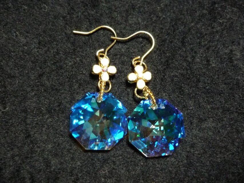 大人気の14mmの8角形オクダゴンの形をしたスワロフスキーにメタルフラワーをセットにしたピアスです。