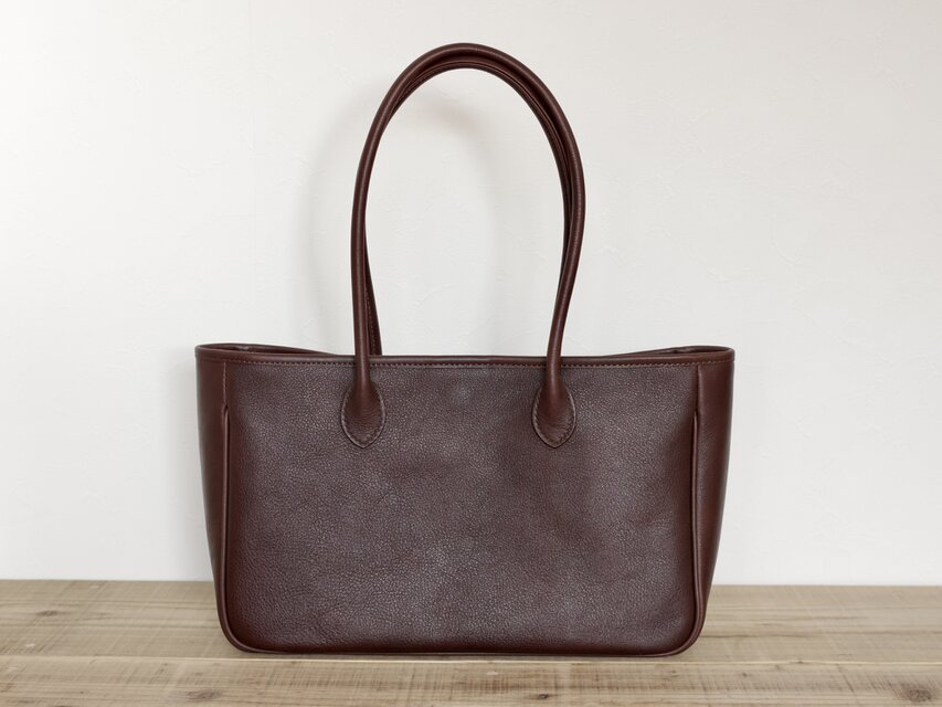 柔らかいシボ感のレザーを使用した浅めサイズのトートバッグです。