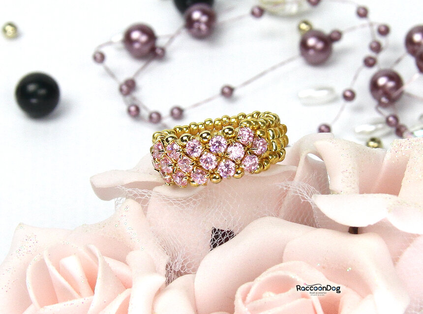 ビーズ,リング,コスチュームジュエリー,ビーズアクセサリー,ビーズリング,キュービックジルコニア,ローズ,ゴールド,ジルコニア,ピンク