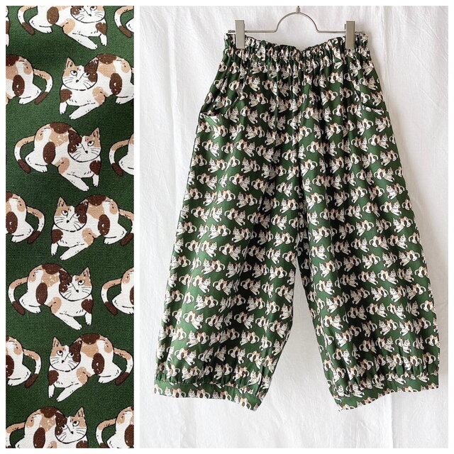 三毛猫屋の三毛猫バルーンパンツ:80cm(三毛猫さん:グリーン)